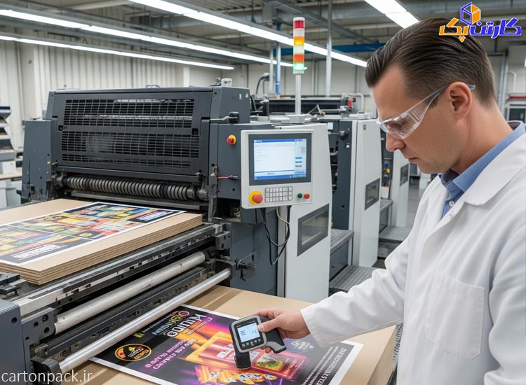 - کنترل حین چاپ (In-press QC): نظارت مستمر اپراتور بر دانسیته رنگ، ترام و رجیستر در حین کار دستگاه چاپ.